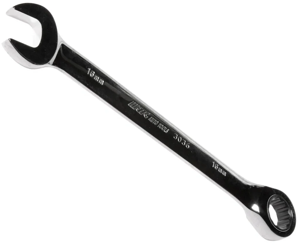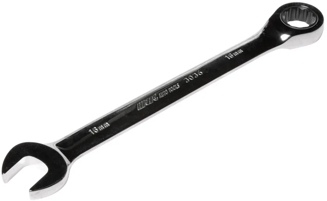 - Тип ключа: Рожково-накидной с трещоткой, двухсторонний.