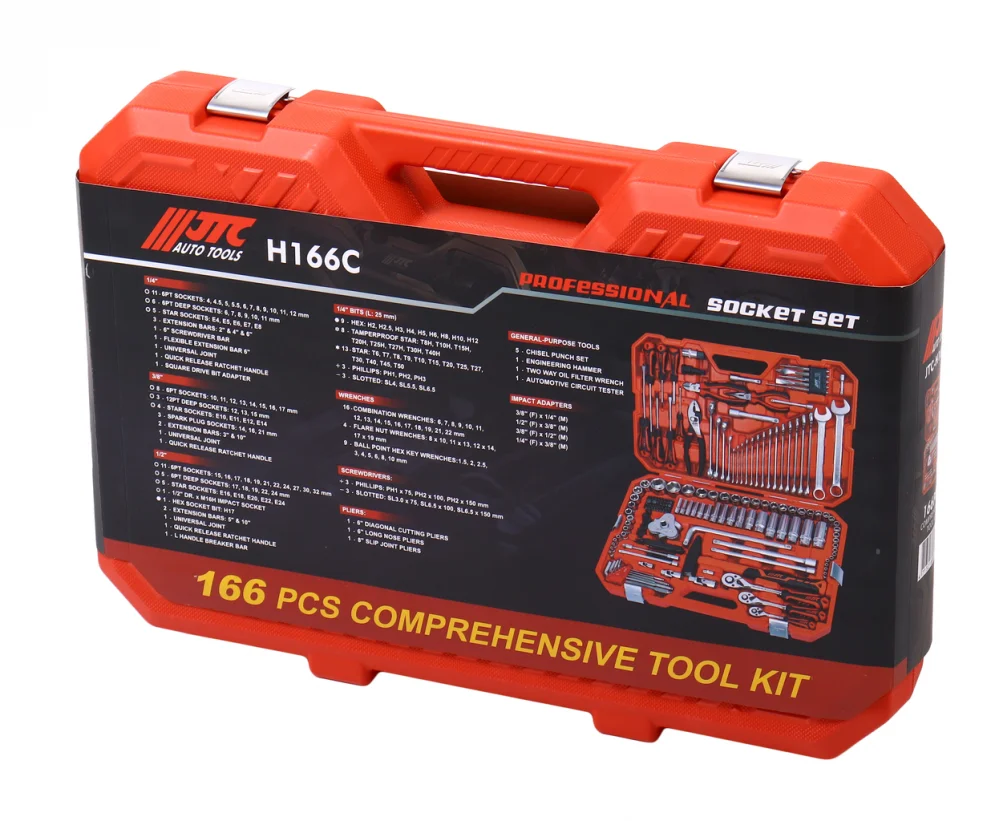 JTC-H166C - Набор инструментов 166 предметов слесарно-монтажный 1/2", 3/8,1/4" 6-ти гран.в кейсе JTC - купить на сайте официального представителя в интернет-магазине Магазин «JTC СПб». На весь ассортимент есть необходимые сертификаты качества и действует гарантия поставщика. Цена указана за 1 шт. Оптовым покупателям дополнительные скидки.