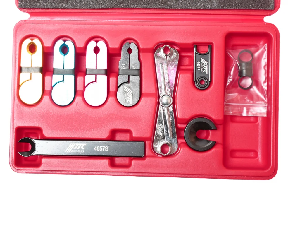 Набор съемников используется для демонтажа трубок топливной системы, системы кондиционирования, топливных шлангов, трубок подвода масла в АКПП и др.