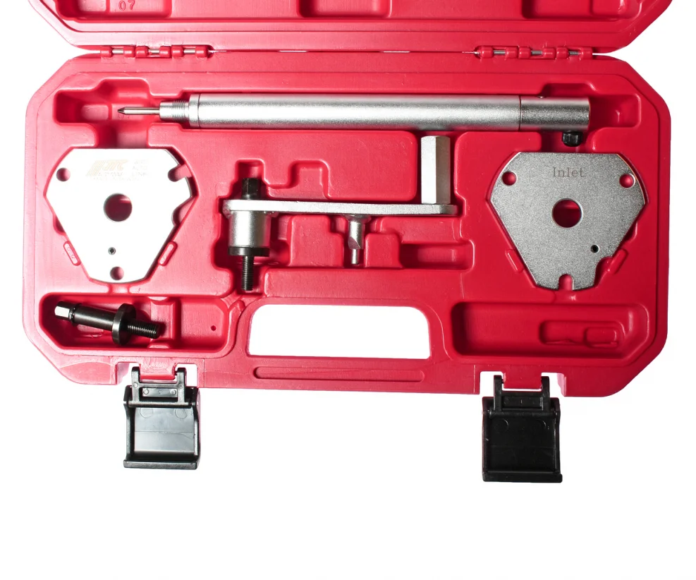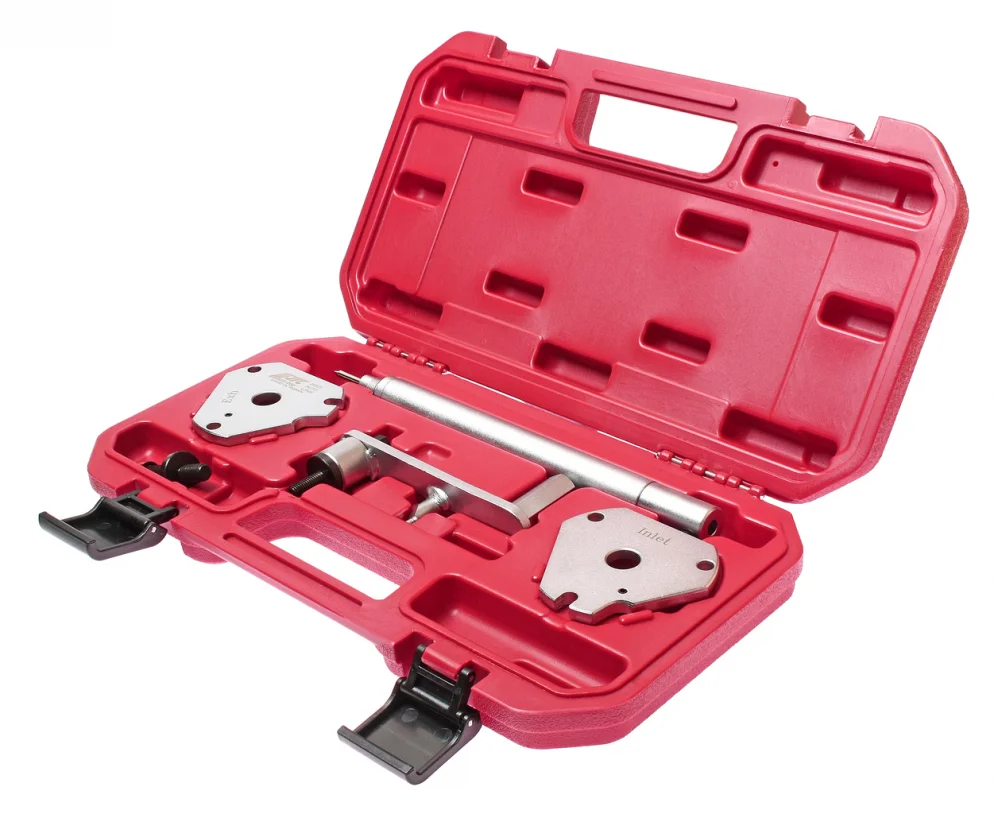 В набор входят инструменты для блокировки роликов распредвала и устройство для начального натяжения ремня.