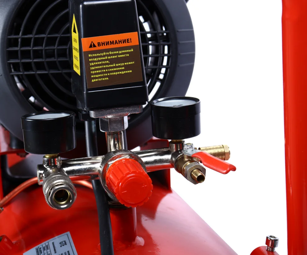 - Компрессор поршневой с прямым приводом V-образный 220В, ресивер 100 л, 250 л/мин;