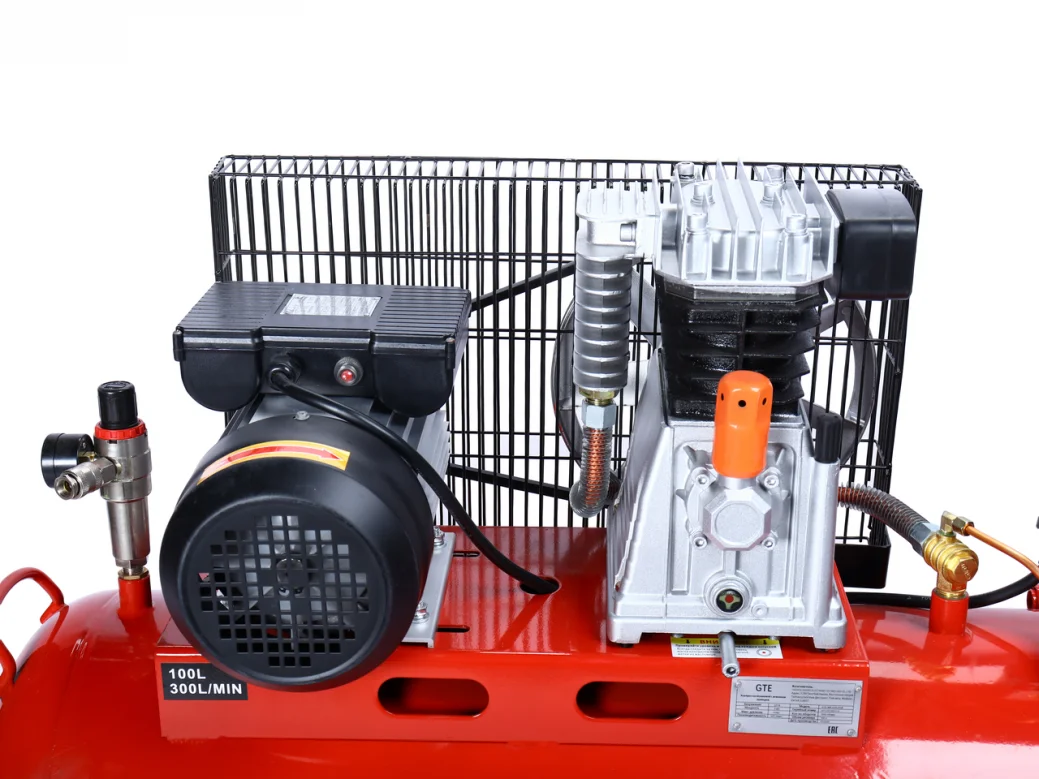- Компрессор поршневой ременной 220В, одноступенчатый, ресивер 100 л, 300 л/мин, GTE-MR100A300B отличается простотой и надёжностью конструкции, высокой ремонтопригодностью и оптимальным соотношением цены и качества.