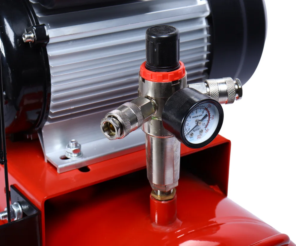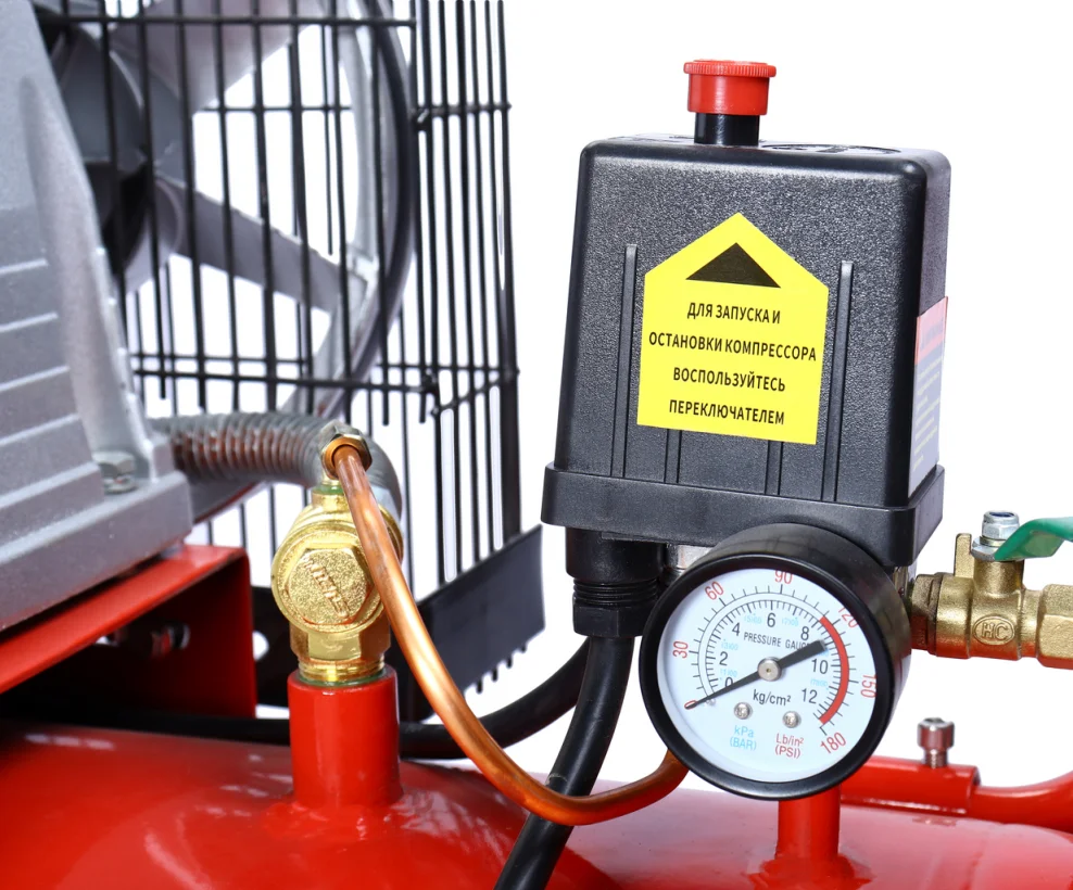 - Компрессор поршневой ременной 220В, одноступенчатый, ресивер 100 л, 300 л/мин;