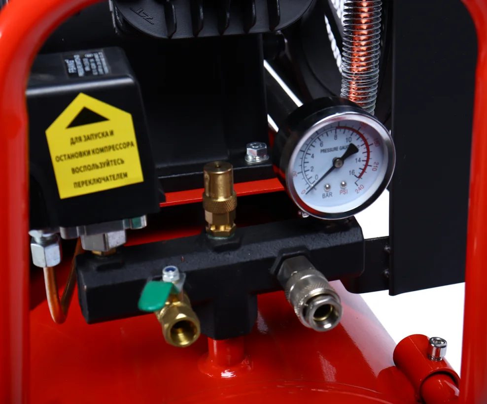 - Компрессор поршневой с ременным приводом 220 В, ресивер 100 л, 400 л/мин;