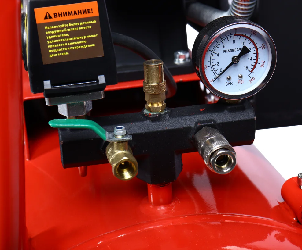 - Компрессор поршневой с ременным приводом 220В, ресивер 200 л, 400 л/мин;
