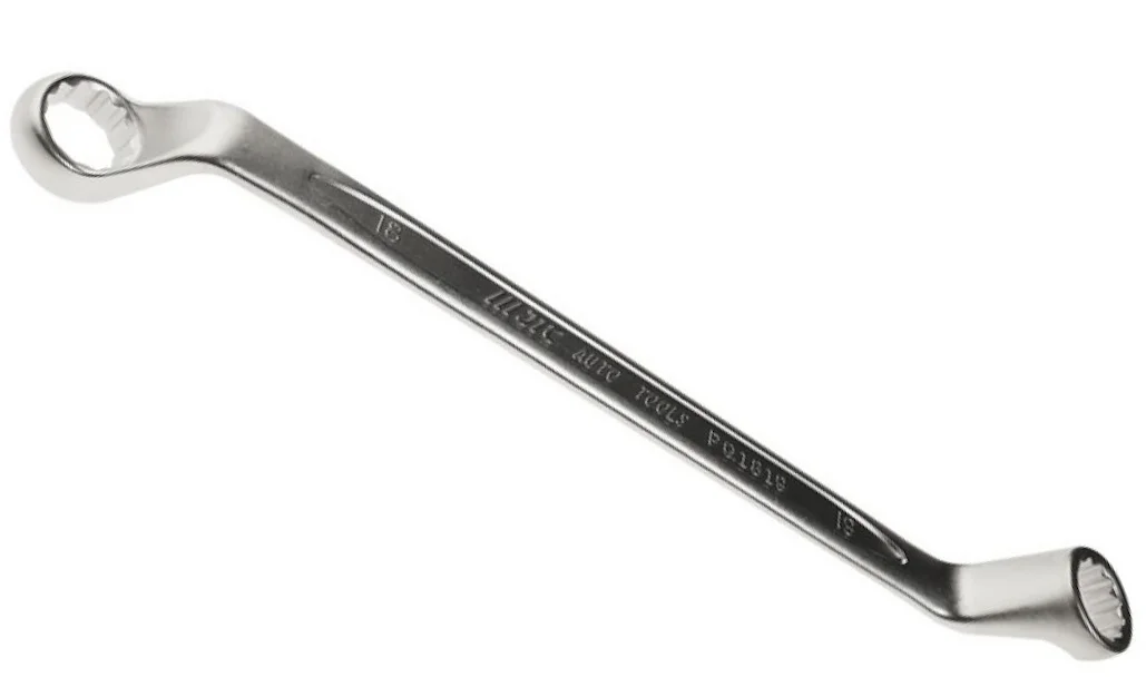 - Представляет собой двухсторонний с изгибом 75° ключ с кольцевыми зевами 18х19 мм.