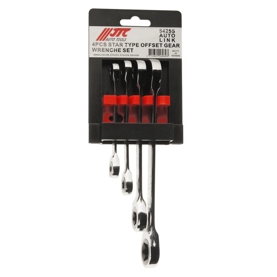 Набор ключей накидных трещоточных TORX (4пр.) JTC купить на сайте официального представителя в интернет-магазине Магазин «JTC СПб». На весь ассортимент есть необходимые сертификаты качества и действует гарантия поставщика. Цена указана за 1 шт. Оптовым покупателям дополнительные скидки.