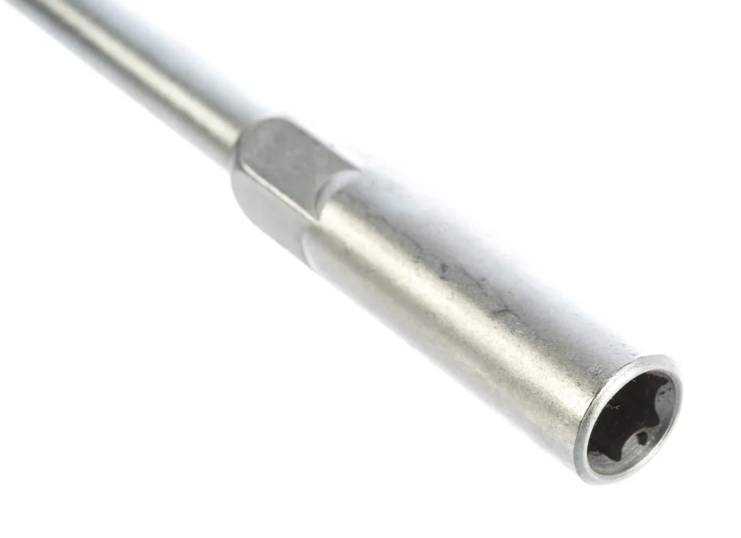 - Стержень с шестигранным профилем позволяет вращать отвертку гаечным ключом для передачи дополнительного усилия.