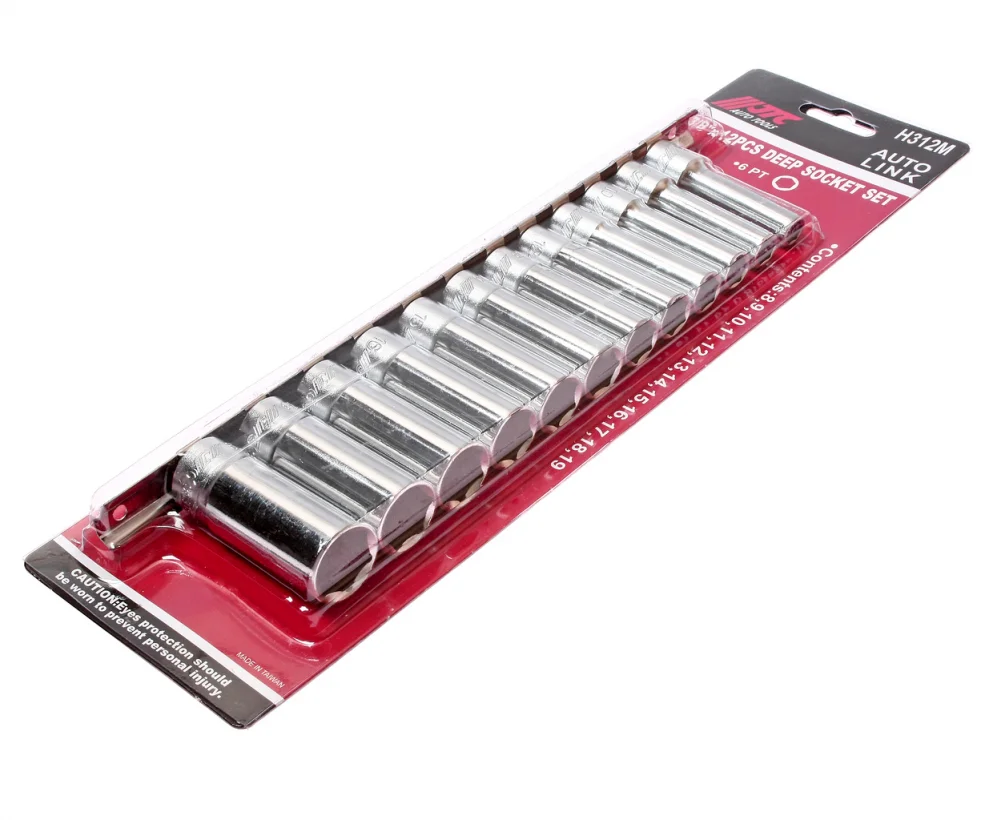 12 ед. головки 3/8": 8, 9, 10, 11, 12, 13, 14, 15, 16, 17, 18, 19 мм.